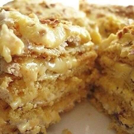 Торт "Королевский" Ингредиенты: 1-й корж: - 2 желтка - 1/3 ст. сахара - 100 гр сливочного масла - 0,5 ч.л. соды - погасить уксусом - 1 ст. муки 2-й корж: - 2 белка - 2/3 ст. сахара - 0,5 - 1 ст орехов Крем: - 0,5 банки сгущенки - 150 гр сливочного масла Приготовление: 1-й корж:Желтки растереть с сахаром, добавить растопленное сливочное масло, гашеную соду и муку. Замесить тесто и поставит в холодильник на 30 минут. Получится 4 коржа. 2-й корж : Взбить белки с сахаром, как для безе.Орехи порезать крупно.На сковородке руками размазать тесто, посыпать орехами (и вдавить в тесто), и смазать белковым кремом. Печь каждый корж на среднем жару (где-то 180 градусов, вы смотрите по своей духовке) 12-15 минут, до румяного цвета безе.Так печем все 4 коржа. Я пекла для ускорения на 2 сковородках. Одна в духовке, а вторую готовлю к выпечке. Крем: Масло взбить со сгущенкой. Готовые остывшие коржи перемазать масляным кремом.Сверху посыпать орешками. Торт обязательно долже