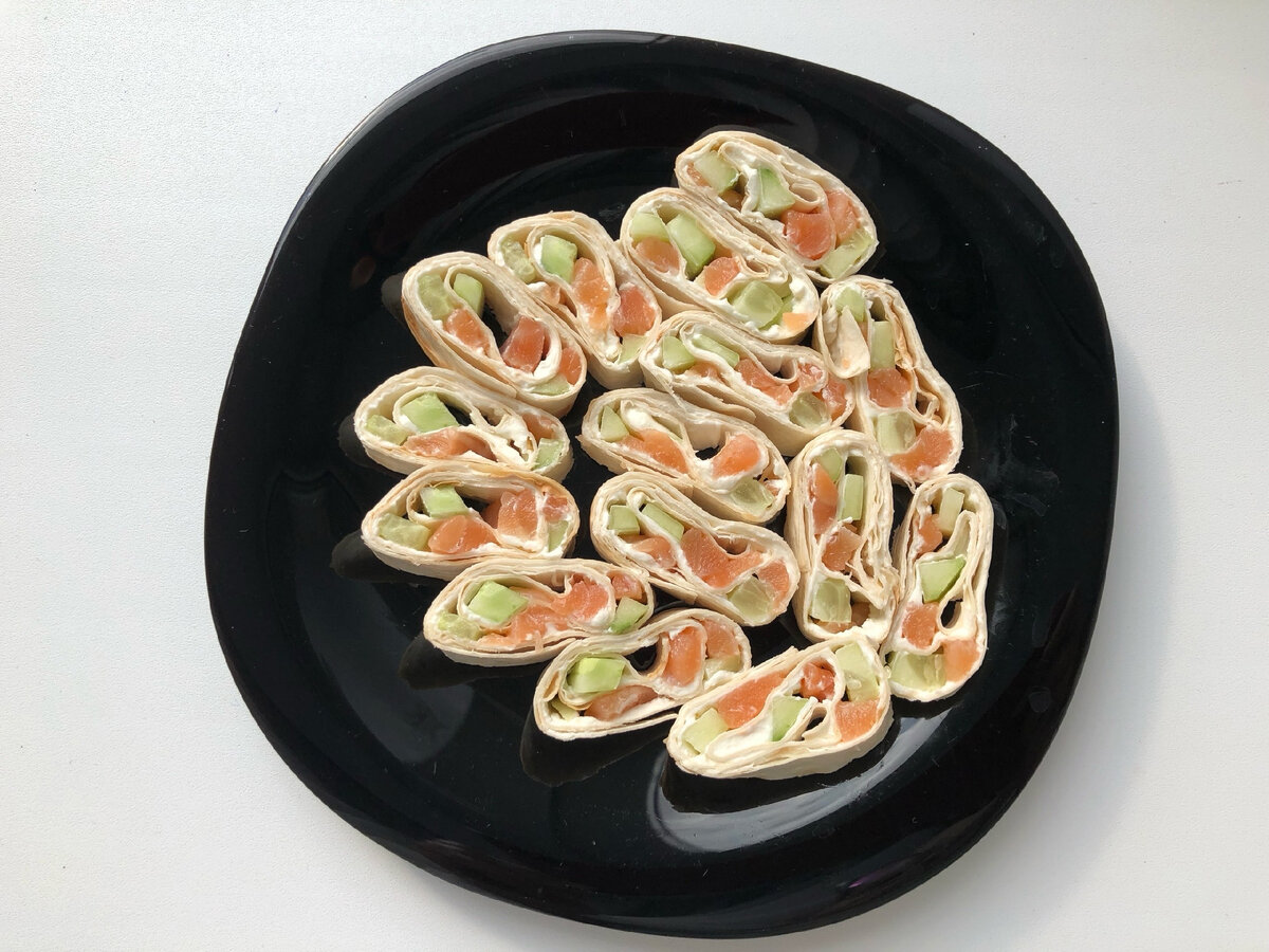 Конечно же, это никакая не новость, скорее спешу напомнить вам, дорогие мои читатели, о самом чудесном сочетании вкусов красной рыбы с творожным сыром. Не имею обыкновения покупать лаваш, да и хлеб ем крайне редко. Но вчера в магазине мой взгляд, вяло ищущий что бы такое-эдакое купить, зацепился за симпатичную коробочку сливочного творожного сыра. Вот что я хочу!- подумала я, отправляя в корзину лаваш и замороженную семгу. Семгу я всегда солю сама. Свежайшая, нежнейшая семга к утру готова и дело пяти минут - намазать любым сыром типа Филадельфии лаваш: Нарезать рыбу и свежий огурец на продолговатые кусочки и выложить на лаваш с той густотой, какая вам нравится. Сворачиваем лаваш и режем острым ножом наподобие роллов: Это самый простой и быстрый вариант. По желанию же можно добавить каперсы, листья салата, да что угодно! Для завтрака, когда каждая минута на счету или в ситуации "гости на пороге" - такое блюдо в любом варианте палочка-выручалочка. Приятного аппетита! Делитесь своими быст
