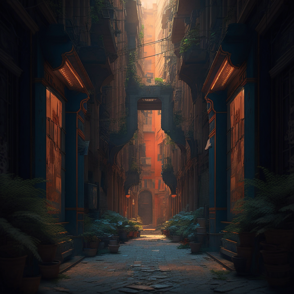 Ветер завывал в темных, узких улочках города, обдавая мрачными тенями старые, истерзанные временем здания. Редкие фонари бросали свет на тусклые каменные плиты, и Эдгар, недавний житель этого города, тщетно пытался найти выход из этого лабиринта. На его запястье мерцал дрожащий свет дисплея часов, отсчитывая бесконечные минуты его заблуждений. С каждым поворотом город казался все более чуждым и мрачным. Стены, обросшие плющом и покрытые давно забытыми граффити, были словно застывшие тени, вырванные из каких-то бездонных кошмаров. Он уже не мог вспомнить, как оказался здесь, но его душу охватывало страх, сжимая сердце ледяной хваткой. В глубине лабиринта, там, где свет фонарей не мог пробиться сквозь тьму, Эдгар слышал далекие шорохи, шепоты, смех и хныканья. Он чувствовал, что его наблюдают множество глаз, прячущихся в темноте. Эти звуки наводили ужас, и Эдгар ускорял шаги, пытаясь покинуть это проклятое место. Под ногами лежали странные предметы, издавая пугающий скрежет при каждом пр