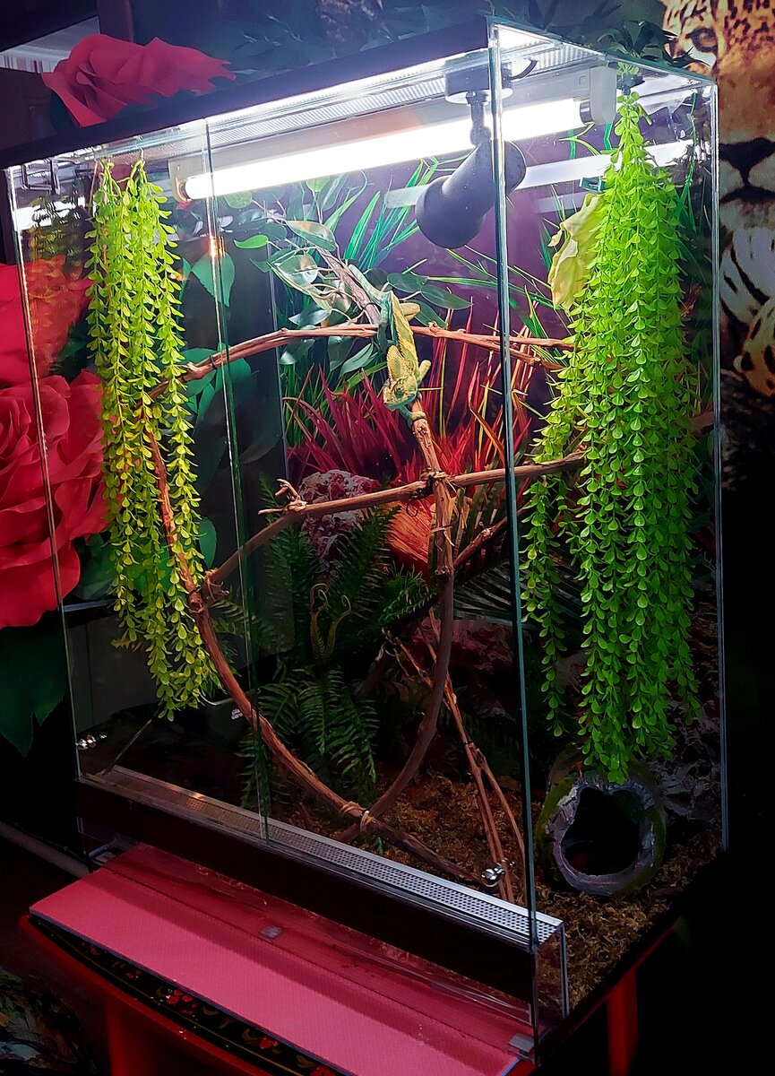 Как обустроить террариум для хамелеона . Размеры , оформление , температура , освещение...