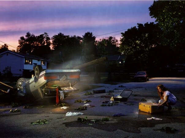 Грегори Крюдсон (Gregory Crewdson) — американский арт-фотограф, известный своими тщательно продуманными постановочными работами. В его, зачастую, сюрреалистичных, снимках отражены сцены из обычной американской жизни. На его фотографиях люди выглядят застывшими, словно потерявшимися в своих мыслях.