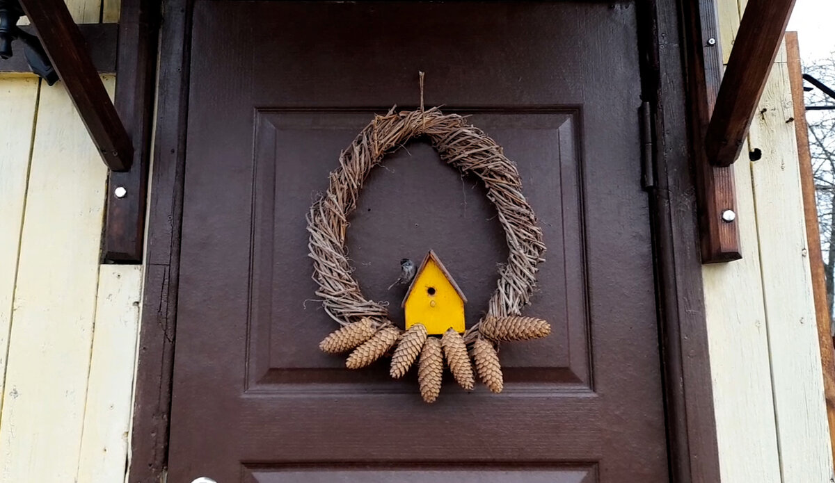 В последний раз декор входной зоны мы меняли после новогодних праздников. Наступила весна и хочется чего-то весеннего. Поменяли венок. Теперь он со скворечником и птичкой. С дровника убрали санки, а на их место поставили ящик с молодило. Как всегда на дровнике стоят фонари. Они актуальны в любое время года. А яркими акцентами являются маленькие деревенские домики. Оконный ящик остались украшать венки из девичьего винограда. Хотелось бы поставить еще первоцветы в горшках, но они стоят во льду. Думаю, все обязательно получится, только случится это немного позже.