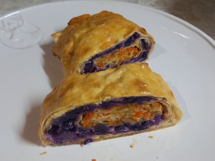 И вкуснятина. Красная капуста делает рулет еще и немножко странным, что интересно и все немедленно хотят попробовать