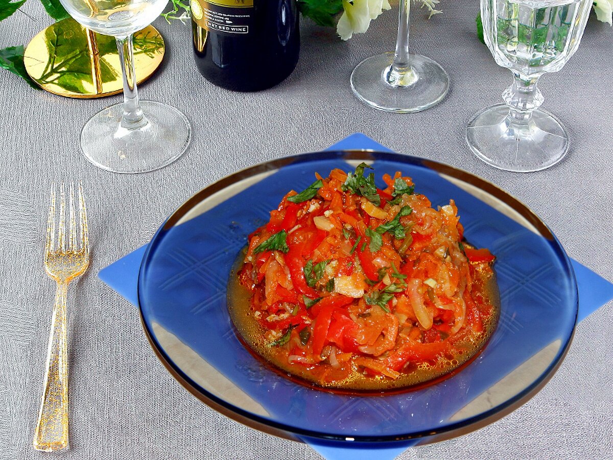 Такой салат можно заготовить на зиму в большом количестве, а не только приготовить на один раз. Продукты Томаты - 3 шт. Лук - 2 шт. Перец сладкий - 5 шт. Морковь - 3 шт. Корень петрушки с зеленью - 1/2 шт.* Соль - 1 ч. л. Сахар - 1/2 ст. л. Уксус - 1 ст. л. Душистый перец - 3 - 4 горошины Лавровый лист - 1 шт. Чеснок - 3 дольки Растительное масло *заменила на 1 пакетик (20 г) сухого корня петрушки + зелень петрушки Приготовление 1. Томаты предварительно пропустить через мясорубку, натереть на тёрке или мелко порезать. Установить программу «Жарка-Овощи» или «Мультиповар» на 140 градусов. Налить и нагреть растительное масло. Положить и обжарить лук до золотистого цвета. 2. Добавить остальные овощи, коренья, соль, сахар, уксус, перец и лавровый лист. Довести до кипения и подержать так 3 минуты, затем программу выключить. Овощи перемешать. Установить программу «Мультиповар» на 20 минут, температура 100 градусов или «Подогрев» на полчаса. 3. После сигнала выдавить в салат чеснок. Перемеша