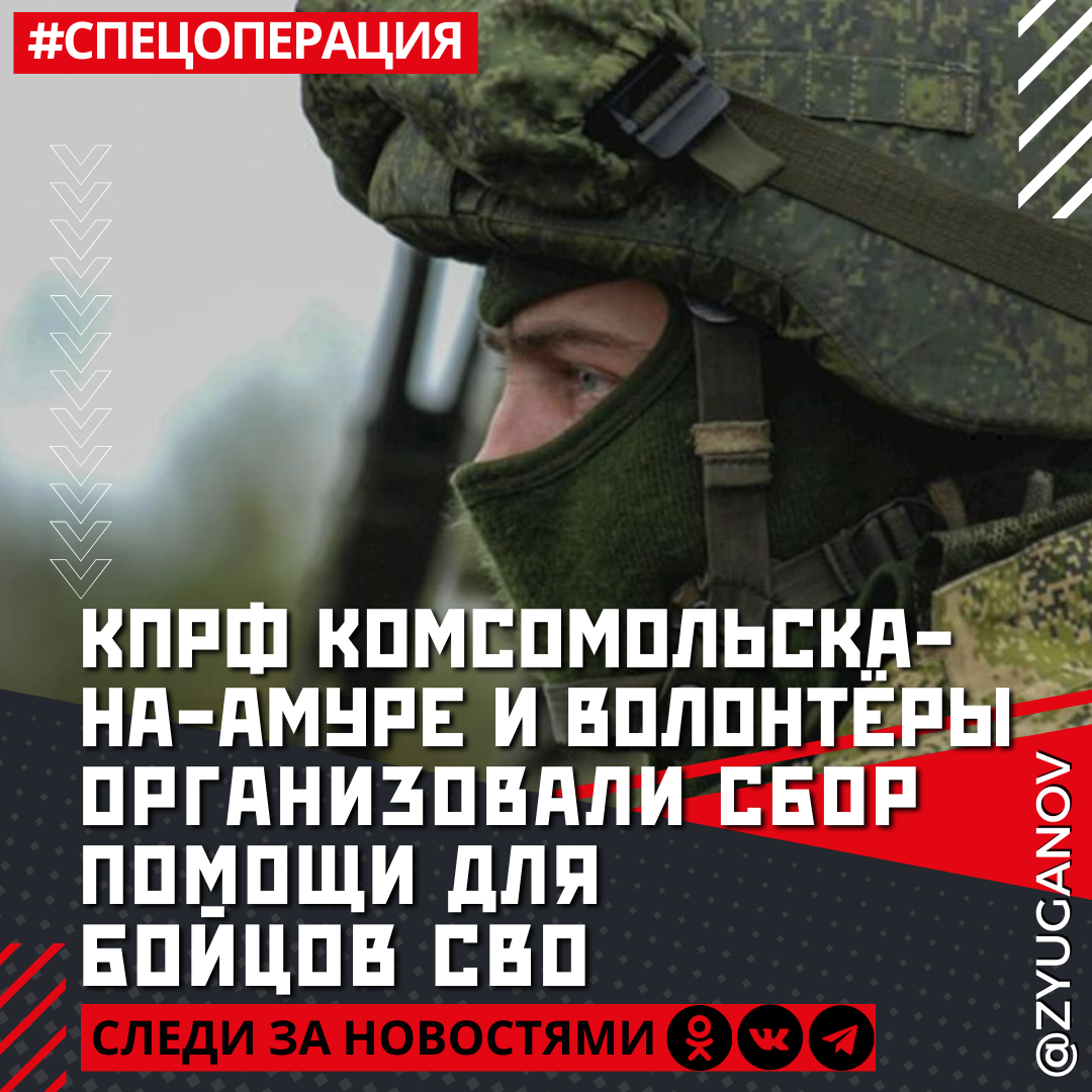 Наши товарищи - секретари Комсомольского-на-Амуре горкома КПРФ Павел Трутнев и Александр Антоночев - не только координируют сбор гумпомощи, а также пошитого и изготовленного обмундирования и снаряжения, но и доставляют все это в одну из воинских частей Хабаровска.