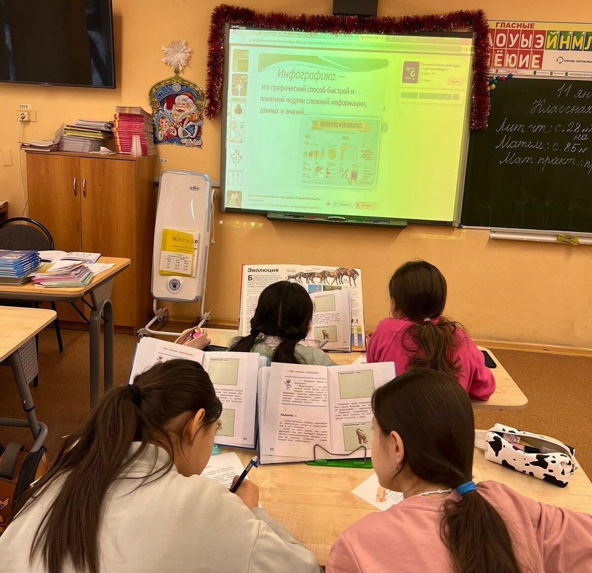 Заглядывая на уроки в начальной школе мы чаще попадаем в первый или второй классы. А вот в четвёртый попадаем редко. Последний раз мы смогли понаблюдать, как ученики школы 2097 начинают знакомство с инфографикой. В этот раз мы снова посетили урок Ирины Сергеевны где она с ребятами завершала освоение этой не простой темы. Важно заметить, что в школе 2097 апробируются наши программы для 5-6 классов, о которых мы скоро будем делать отдельные публикации. Так вот, среди наших разработок - использование смартфона, как инструмента для работы с информацией. Любопытно было увидеть, что четвёртый класс пытается осуществить "гладкий" переход учеников к программе пятого класса. Сама же Ирина Сергеевна поделилась с нами следующими наблюдениями: Проверочная работа по теме "Инфографика" для 4 класса займет у нас два урока. Задание следующее: рассмотреть страницу Московского Планетария в Интернете по адресу planetarium-moscow.ru (рубрики и объявления, правила посещения) и составить инфографику - п