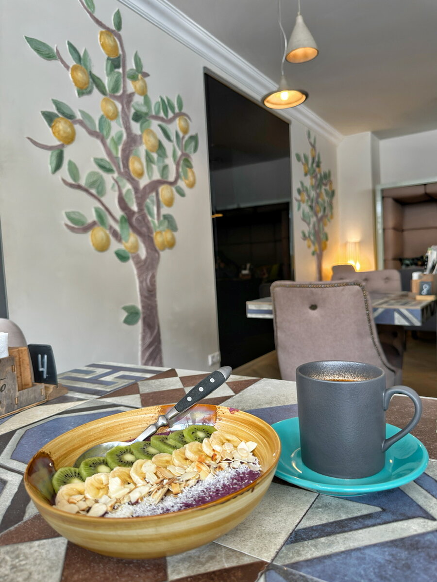 Неожиданно хорошие завтраки в итальянском кафе-мороженом! Подозреваю, что салаты и роллы тоже классные, но до них я пока не добралась. Для тех, кто сладко ленится готовить дома, здесь есть каши, блины, сырники, запеканки и яйца во всех видах. Я выбрала овсянку со смородиной, киви, бананом и хлопьями миндаля.
