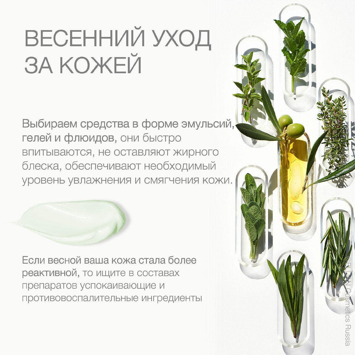 ❄Зима добавила многим из нас проблем с кожей, часто мы слышим жалобы, что она стала сухой, тусклой или чувствительной. 🍃С приходом весны и тепла хочется не только снять с себя теплые одежды, но и перейти на более легкие текстуры. Совершенно правильное желание, кожа уже не настолько нуждается в питании и защите от непогоды, выбираем средства в форме эмульсий, гелей и флюидов, они быстро впитываются, не оставляют жирного блеска, обеспечивают необходимый уровень увлажнения и смягчения кожи. ❕Если весной ваша кожа стала более реактивной, то ищите в составах препаратов успокаивающие и противовоспалительные ингредиенты: азулен, пантенол, бисаболол, аллантоин, гиалуроновую кислоту и др, благодаря им вы сможете вернуть комфортные ощущения и снизить чувствительность. 🍋Часто после зимы организму не хватает витаминов и страдает от этого дефицита в первую очередь кожа, на помощь придут сыворотки и маски для интенсивного ухода, некоторые из них можно использовать 2-3 раза в неделю. Также ищите в
