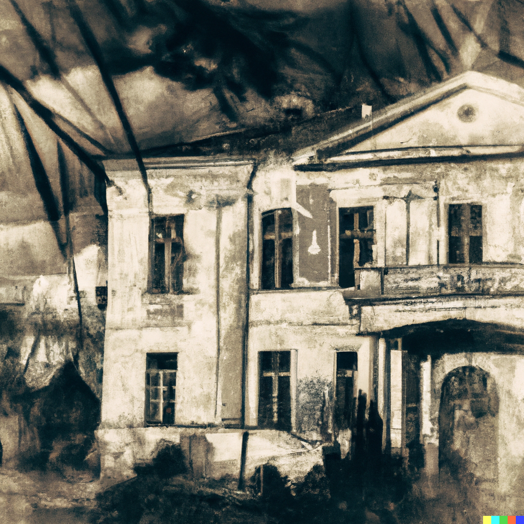 Проезжая по извилистым проселочным дорогам, они наткнулись на старый заброшенный дом. Дом был темный и ветхий, с разбитыми окнами и кривой входной дверью. Было похоже, что он был заброшен на долгие годы.