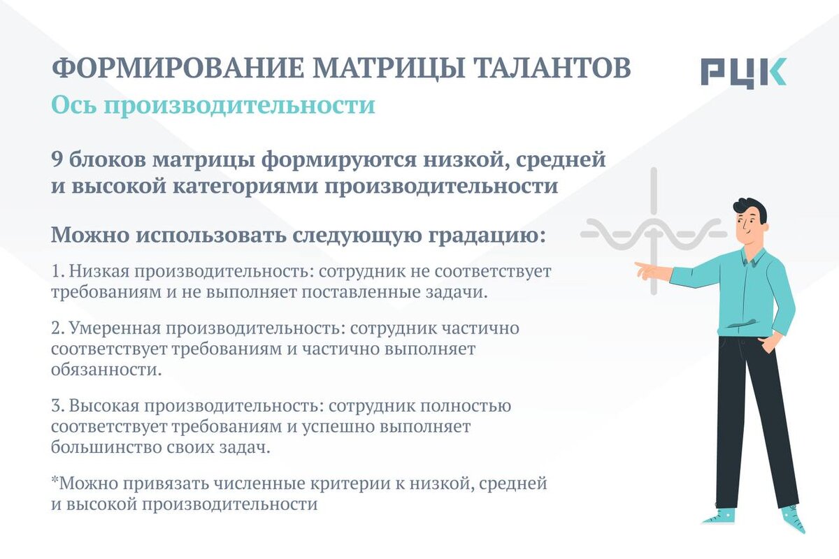 Матрица талантов — инструмент управления талантами и планирования преемственности. ☝️ В основе инструмента лежит деление сотрудников на 9 групп в зависимости от их производительности и потенциала. При оценке производительности сотрудников руководители обращают внимание на то: 👌 насколько хорошо сотрудник работает сегодня; 👌 насколько хорошо он будет работать в будущем (его потенциал). Матрица талантов позволяет систематизировать данные и принимать объективные управленческие решения. О том, как она формируется, расскажем в карточках.