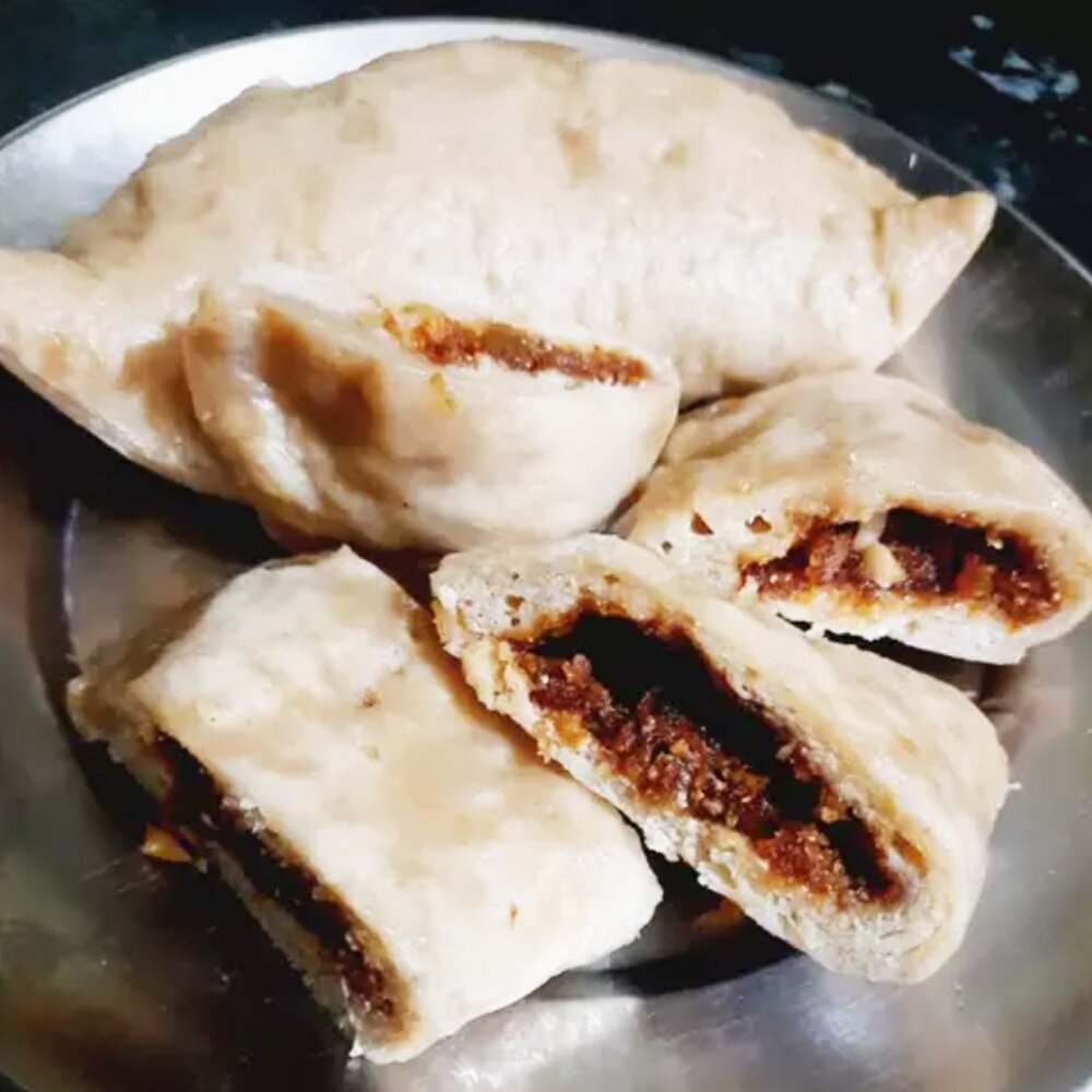 Ингредиенты: цельнозерновая мука, соль, дрожжи, масло гхи, вода, кокосовая стружка, джаггери, маковые зерна, миндаль, кешью, изюм, молотый кардамон Рецепт: Сидду - известное блюдо среди уроженцев Химачала, регулярно употребляемое из века в век. Существует множество вариантов приготовления начинки для сидду. Используют начинку из гороха, картофельную начинку, начинку из урад дал, начинку из раджмы (фасоли), начинку из арахиса, джаггери и кокоса и т.д. Приготовление сидду требует времени, но ничто не сравнится с их восхитительным вкусом. 3 порции Что понадобится: