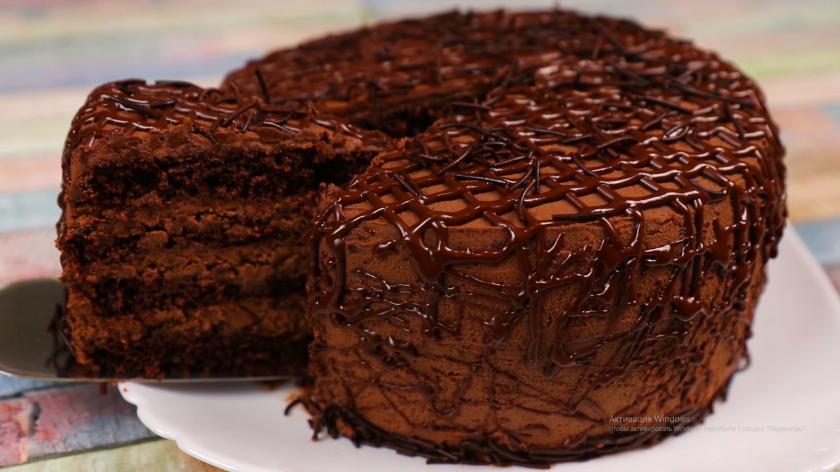 А вы готовили домашний торт без духовки, сковороды и покупного печенья? Давайте вместе попробуем это сделать))) Через сито просеиваем 140 г муки и 3 ст.л какао, добавляем 2 ч.л разрыхлителя, щепотку соли и 90 г сахара. Перемешиваем венчиком сухие ингредиенты. Добавляем к ним 5 ст.л рафинированного растительного масла и 200 мл молока. Перемешиваем венчиком до гладкой однородной консистенции. Готовое тесто среднее по густоте. Дно силиконовой формы застилаем антипригарным пергаментом, бока ничем не смазываем. Выливаем тесто в форму d -16 или 18 см, разравниваем. Выпекаем тесто 6-7 минут в микроволновке при 800-900 Ватт. Готовность проверяем зубочисткой, протыкаем посередине, зубочистка должна быть сухой. Для крема в миску выливаем 170 г молока, добавляем 30 г сливочного масла. Масло с молоком прогреваем в микроволновке, пока масло полностью не растает. Смесь горячая. Добавляем 170 г черного шоколада. Молоко должно полностью покрыть шоколад, оставляем на 1-2 минуты постоять. Перемешиваем