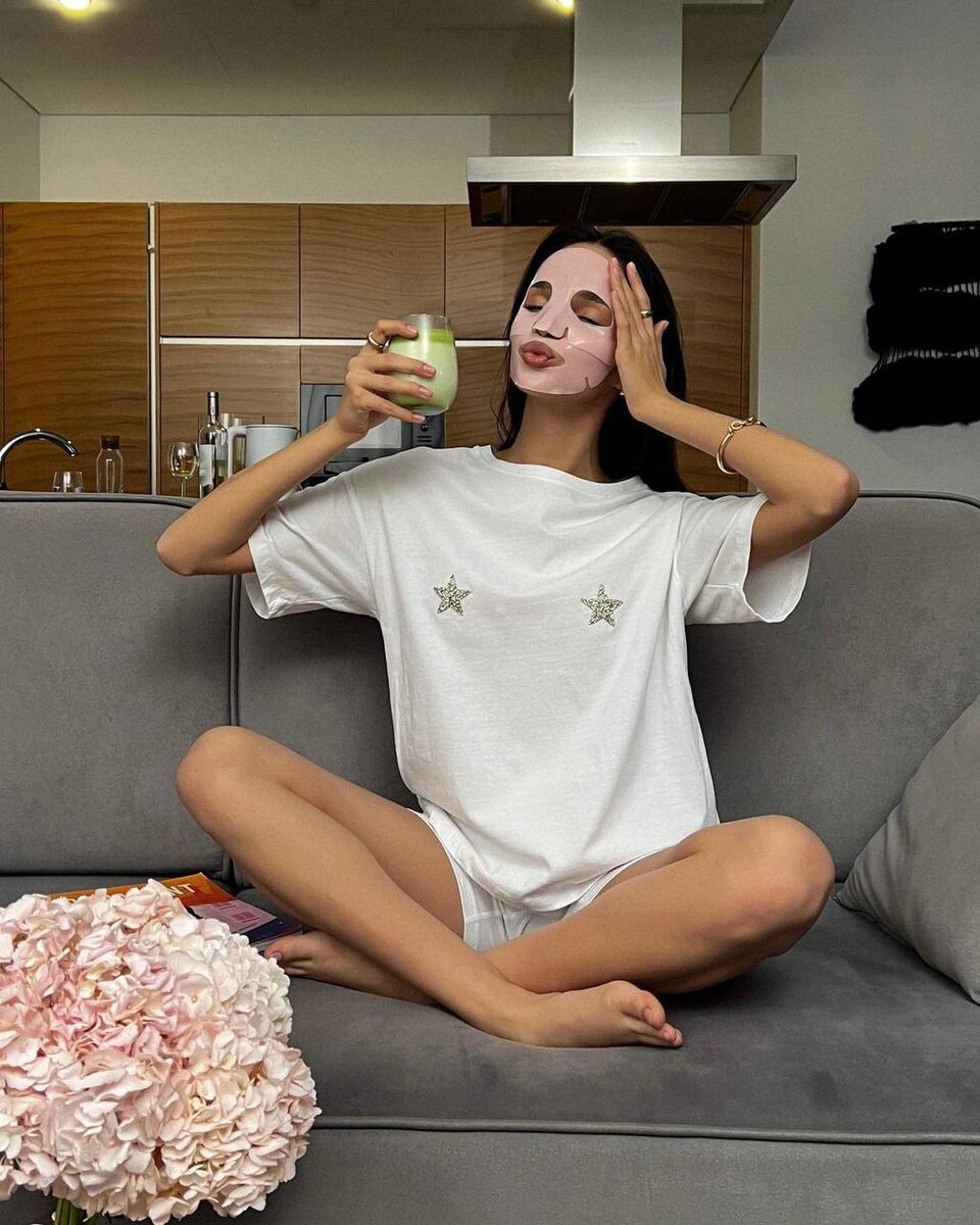На курсах, где качается женская энергия, первым делом следует запомнить главную заповедь: «выгляди дома так, будто ты не дома». Ну а мы что? Мы не против. Сильно наглеть и загонять тебя в корсеты не будем, а вот такую стильную футболку предложим. Мы бы в ней, если честно, не только дома ходили 👌🏻