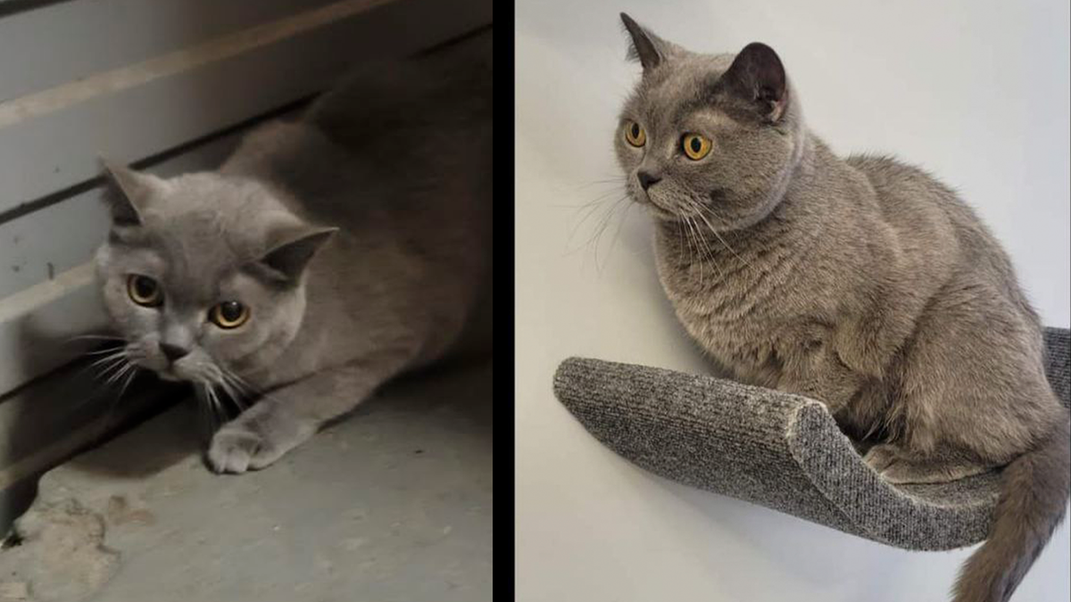 Найденыша зовут Тимошей. По анализам он здоров — вирусов и инфекций нет, кастрирован. По биохимии крови врач предположил, что котик длительно голодал, да и весил малыш всего 3,5 кг, а ведь британские кошки — одна из крупных пород. Сейчас Тимоша на временной передержке и постепенно приходит в форму.