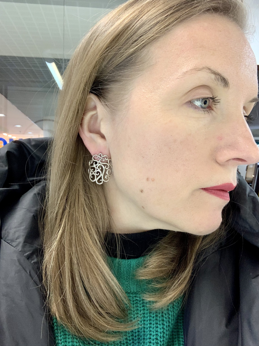 Зашла в небольшой, но интересный магазинчик серебряных украшений. Решила сделать обзор для вас, т к я люблю серебро и всегда смотрю что нового придумали дизайнеры. Раньше я не любила серебро, носила только исключительно золотые украшения, но со временем стала замечать что у изделий из серебра бывают намного интересней дизайны чем у золотых изделий. К тому же изделия из серебра более доступны по цене, можно чаще радовать себя новинками. РИФ- петербургская компания производитель. Выпускают оригинальные изделия из серебра 925 пробы, натуральных камней и поделочных. Так же они могут сделать изделие на заказ. Знаю что у них два магазина. Один отдел в ТК Академический, расположенный на цокольном этаже, второй в центре Санкт Петербурга по адресу Невский пр 35, 1 этаж. На фото ниже серьги крупные, мне сказали что это летний вариант. Мне понравился узор, смотрятся интересно и не банально. Эти серьги выполнены в двух разных вариантах, прямой круг, как на фото выше, и вогнутый, как на фото