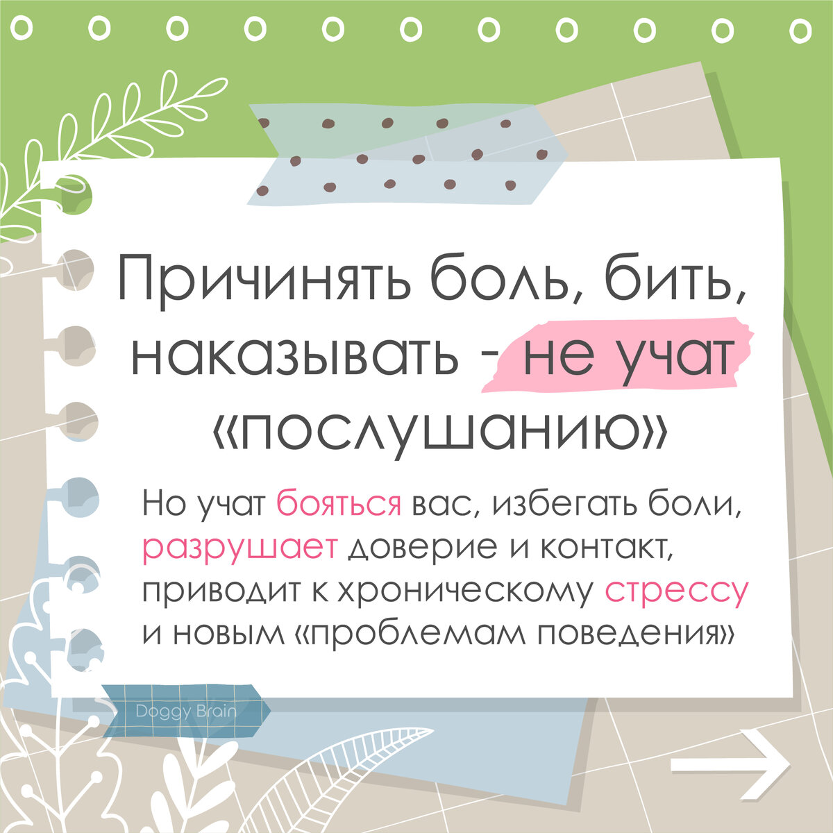 Рубрика - доброе напоминание о самом главном. Современные научные знания о собаках не оставляют нам никакого морального права продолжать действовать старыми и неоправданно жестокими методами. ❌Битьё, пинки, шлепки, рывки поводком, электрошоковые ошейники, строгие ошейники, удавки - увы, человечество изобрело множество способов и инструментов причинять боль. ❌Но ни один из них не прошёл проверку ни моралью, ни временем, ни наукой. ❌Нет никаких причин, чтобы намеренно причинять боль живому существу. ❌Боль ничему не учит и не имеет никакого отношения ни к научению, ни к благополучию. Собаки - невероятные существа, которые заслуживают, чтобы мы развивались, учились и менялись. • • • • • • • • • • • • • • • • • • • • • • • • • • • • • • Doggy Brain - блог о собаках для их людей. Подпишитесь, чтобы не пропустить новые выпуски и знать о собаках больше