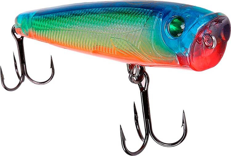 Безлопастная приманка. Ее отличие - характерное углубление в носовой части, в котором располагается крепление для лески. Благодаря этому углублению, поппер, двигаясь у самой поверхности воды, во время проводки создает аппетитные хлюпающие звуки, поднимает брызги. Оставляет на глади водного зеркала соблазнительный витиеватый след. Все это приманивает хищника и провоцирует его атаковать приманку.