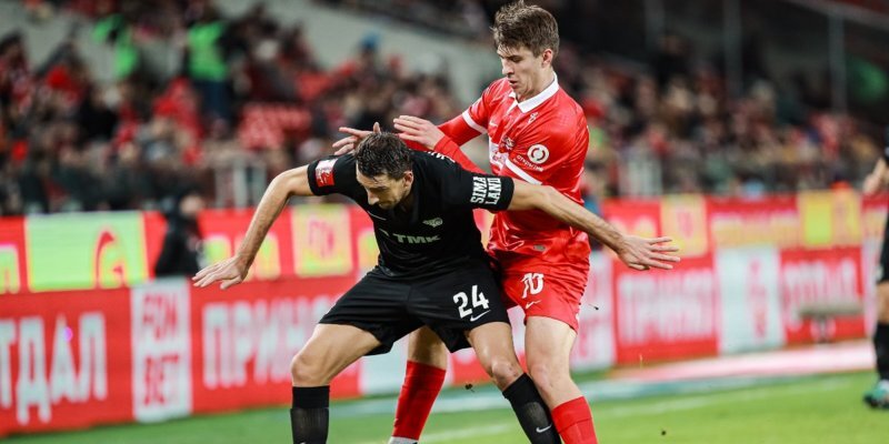 Московский «Спартак» обыгрывает екатеринбургский «Урал» после первого тайма первого полуфинального матча Пути РПЛ ФОНБЕТ Кубка России.