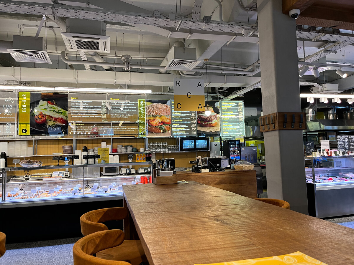 Пробежал глазами витрины с готовой едой. Очень соблазнительно выглядели котлеты «Нежность трески» по 290 рублей за 100 граммов, лазанья с лососем и шпинатом (300 рублей) и баклажаны по-кубански с чесноком (260 рублей). В какую цену обойдётся тарелка с блюдом, затрудняюсь сказать. Не дёшево.
