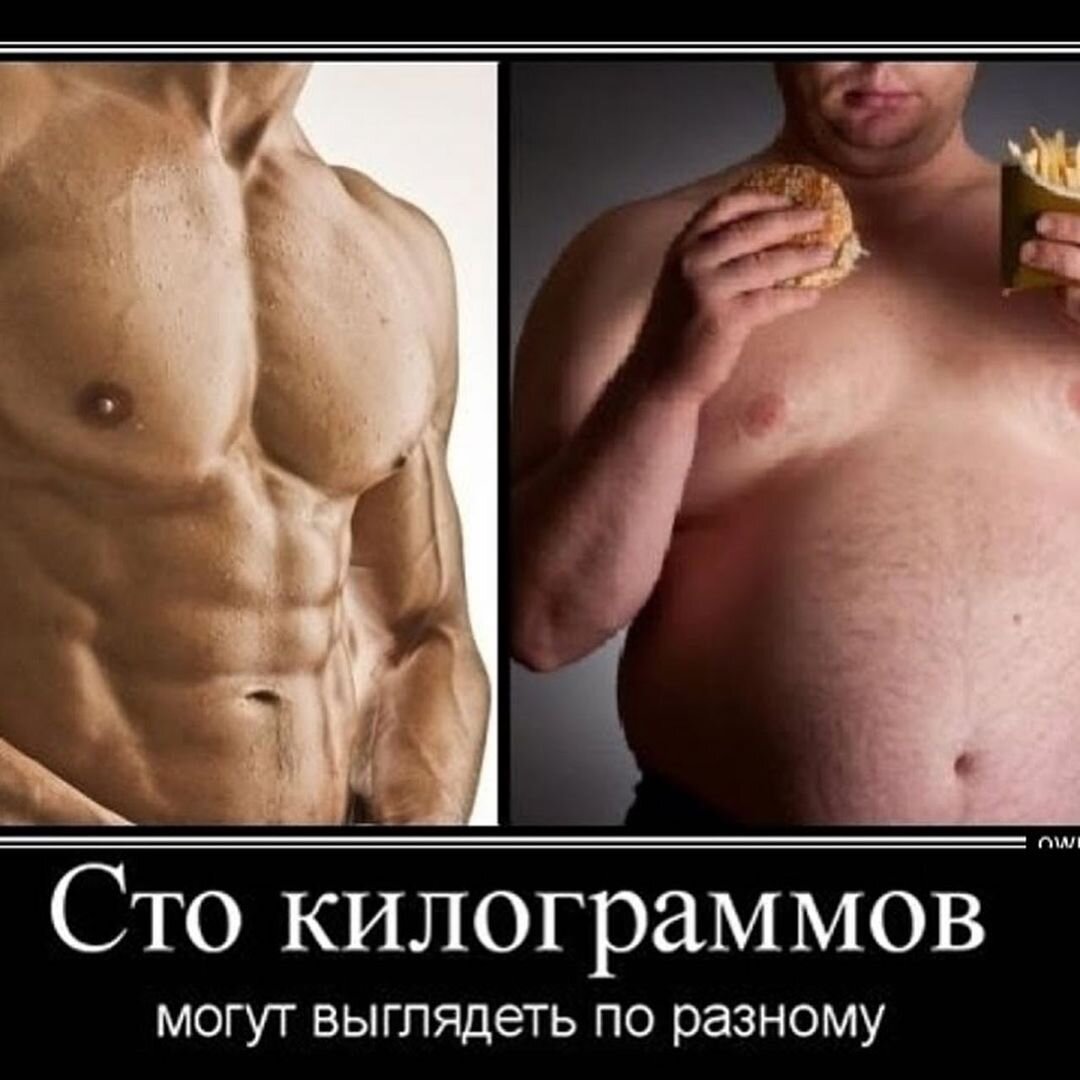 Мужикам надо не худеть, а качаться Это миф! Дело в том, что если у мужчины изначально большой % жира в организме, то «накачаться» ему будет очень сложно, если не невозможно. Как это работает? Для того, чтоб накачаться надо гипертрофировать ряд мышц (бицепсы, мышцы спины, мышцы ног и т.д.) Для гипертрофии нужно 2 условия: Однако, что происходит в том случае, если в качалку приходит мужчина с изначально большим % жира в организме? Его тело в профиците калорий начнёт приращивать куда больше жира, чем мышц. Вес будет расти, мышцы будут тоже незаметно расти под все растущим слоем жира. В итоге мужчина будет похож не на груду мышц, о которой он так мечтает. А на толстого колобка на ножках. Увы, именно так это работает. Виной тому количество адипоцитов (жировых клеток) в организме. Чем их больше и чем больше они по размеру, тем больше организм приращивает жир, а не мышечную ткань. Так же тому виной сниженный уровень тестостерона у мужчин, имеющих избыточный % жира в организме. Норма для мужч