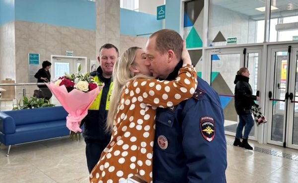 Сегодня мама выписалась из Перинатального центра с дочкой Софией. Помогшие ей сотрудники ДПС встретили Ольгу вместе с ее мужем и старшим сыном и поздравили с рождением дочки.