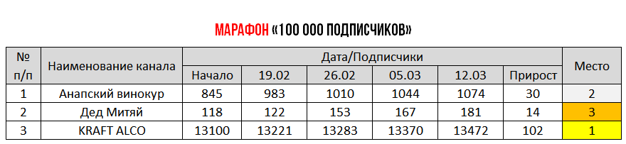Марафон "100 000 подписчиков". Итоги 5 недели состязания