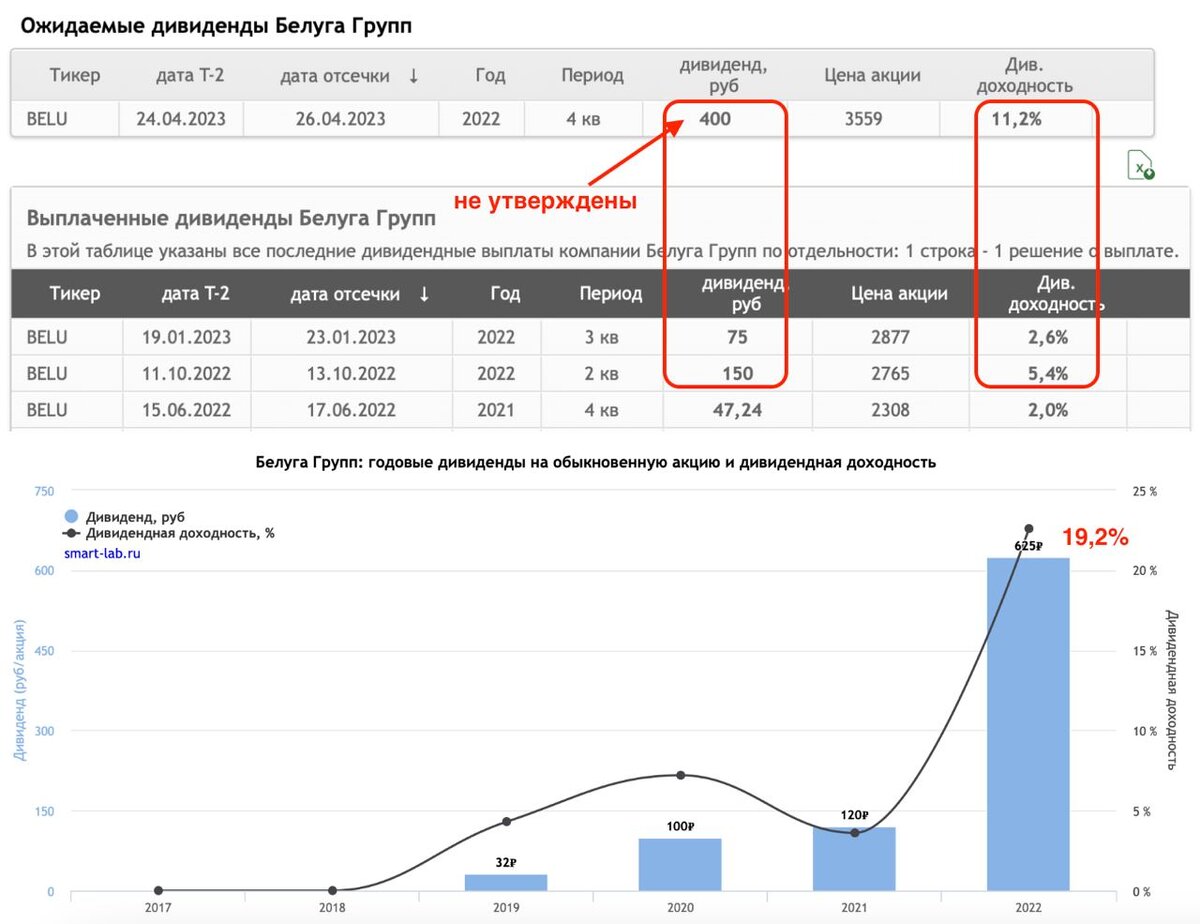 Рынок РФ к середине дня продолжает болтаться на околонулевых значениях. Негатив за рубежом, вызванный банковским кризисом в США, не перекинулся на наши площадки. Да и влияния, как такового, сейчас нет. У нас свои, не менее кризисные, вводные для рынка. 🥃 Ну а пока Мосбиржа продолжает бороться с манипуляциями в акциях третьего эшелона, вчера меня порадовала Белуга. Рекомендация рекордных 400 рублей в качестве дивидендов в моменте заставила подлететь акции на 7%. Однако инсайдерской рост начался еще на прошлой неделе, вынудив меня в рамках нашей работы в премиум канале, закрыть среднесрочную позицию с прибылью 21%. Я многократно разбирал для вас Белугу, и во всех статьях указывал на потенциал ее роста. Компания в моменте отыграла часть апсайдов. Итоговые дивиденды по году превысят 19% (если конечно собрание акционеров утвердит выплату), выручка и прибыль с лихвой опережают инфляцию и всех прочих ритейлеров. 🐟Осталось разобраться, куда менеджмент подевал средства, вырученные от продажи