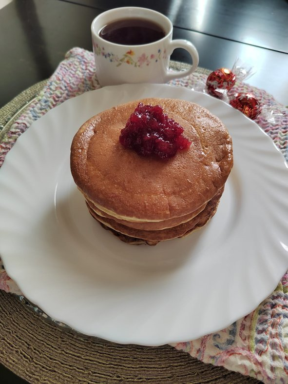 Любители вы блины??? Я думаю, большинство из вас даст положительный ответ. Дети на завтрак уж точно не откажутся от блинчиков или оладушек. Со сгущенкой, сметаной, медом или вареньем. Красота и вкуснота! У меня завтрак всегда ассоциируется с ароматом пекущихся блинчиков. Панкейки - это те же оладушки на кефире, только более сдобные. Порадуйте свою семью вкусным завтраком. Все будут вам искренне благодарны. Список ингредиентов и их количество вы можете найти в конце статьи. Процесс приготовления: Все продукты должны быть комнатной температуры. Яйца разбиваем в миску для замеса теста. Добавляем щепотку соли и сахар. Взбиваем миксером в пышную массу. Добавляем кефир, растительное масло и хорошо перемешиваем. Добавляем предварительно просеянную муку, замешиваем тесто. В конце добавляем соду. Перемешиваем и оставляем в покое минут на 15. Даем соде время начать свою работу. Сковороду с толстым антипригарным дном нагреваем. Выпекаем наши панкейки на среднем огне. У меня вот такая сковородочка
