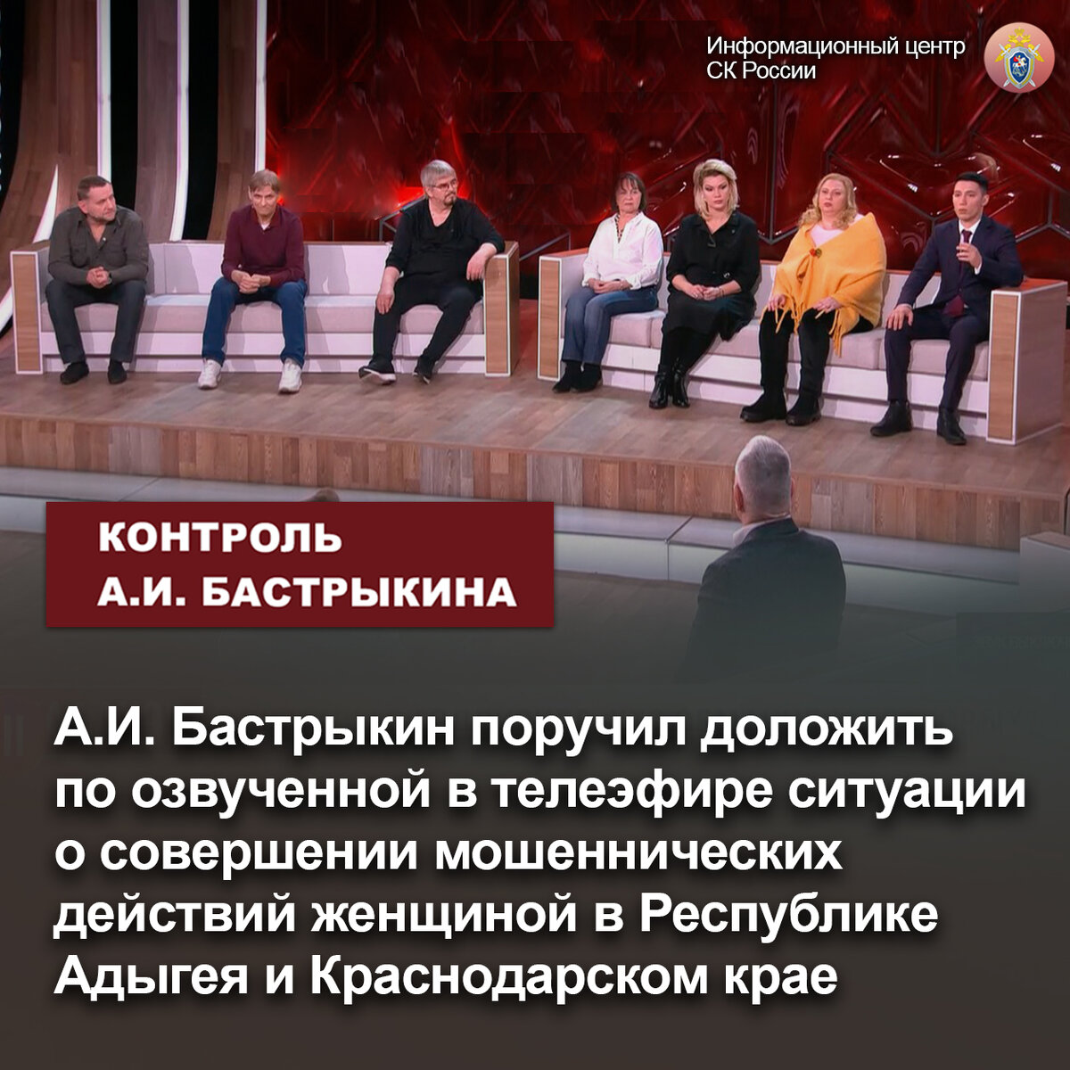А.И. Бастрыкин поручил доложить по озвученной в телеэфире ситуации о совершении мошеннических действий женщиной в Республике Адыгея и Краснодарском крае
