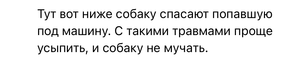 Ребят ,нечестно ,но бывает заходят на мою страницу ,те ,кто считает ,что бездомные животные не должны жить … что я попрошайка и тд … я прошу всех ,кто не хочет спасать животных ,просто отпишитесь . я такой же человек ,как и вы . Со своей работой ,семьей и проблемами ,но я берусь ещё спасать животных ибо мое сердце не может по другому… порой руки опускаются и такие как вы заставляете думать …-а зачем это мне все вообще? взять малыша ,к примеру … лучше б усыпили и тд 🙈😰ну блиин ,вы что ? Сердце где ваше ? Мозг? не решайте кому жить ,вы же не бог!! Это фото малыша ,которого сбила инкассаторская машина . и если вы ему желаете смерти ,то не удивляйтесь бумерангу . пока бьется мое сердце ,я буду идти его зову … пока руки не опустились ,я буду спасать … не мешайте .будьте Человеками🙏 и не обижайте животных …