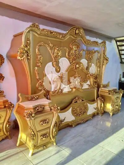 Давно хотела показать, почему у нас (что в Ливане, что в Сирии) часто довольно сложно купить себе мебель. Ибо мебели-то в продаже полно, но она... мягко говоря, часто слишком уж шикарная. Еще бывает ужасного цвета обивка, но это другое. Я так у двух кресел и диванов обивку меняла, было невозможно смотреть на эти коричневые пятна в комнате. Долго почему-то не попадались подходящие иллюстрации, которые могли б показать всю тяжесть ситуации. Ну да я и не так часто и не очень старательно искала. И вот - попалось. Смотрите! Это мебельный гарнитур для спальни. Там есть водяные знаки с сайта, но, думаю, они не очень мешают наслаждаться красотищей изделий. Шкаф с разных ракурсов: Не отстает от своего большого брата и сооружение с зеркалом для макияжа. Под стать которому и небольшие замысловатые тумбочки: Ну и с кроватью. Странно, что она полуторная. В общем, в глазах рябит от золота и обилия громоздких деталей. Лично я такое не люблю. Бывает красивая резьба, да. Бывает, что всё сделано с чув