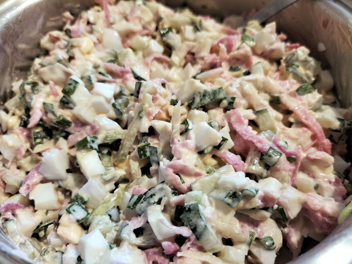 Сначала отварить яйца, 4 штуки. Охладили, почистили и мелко нарезали.