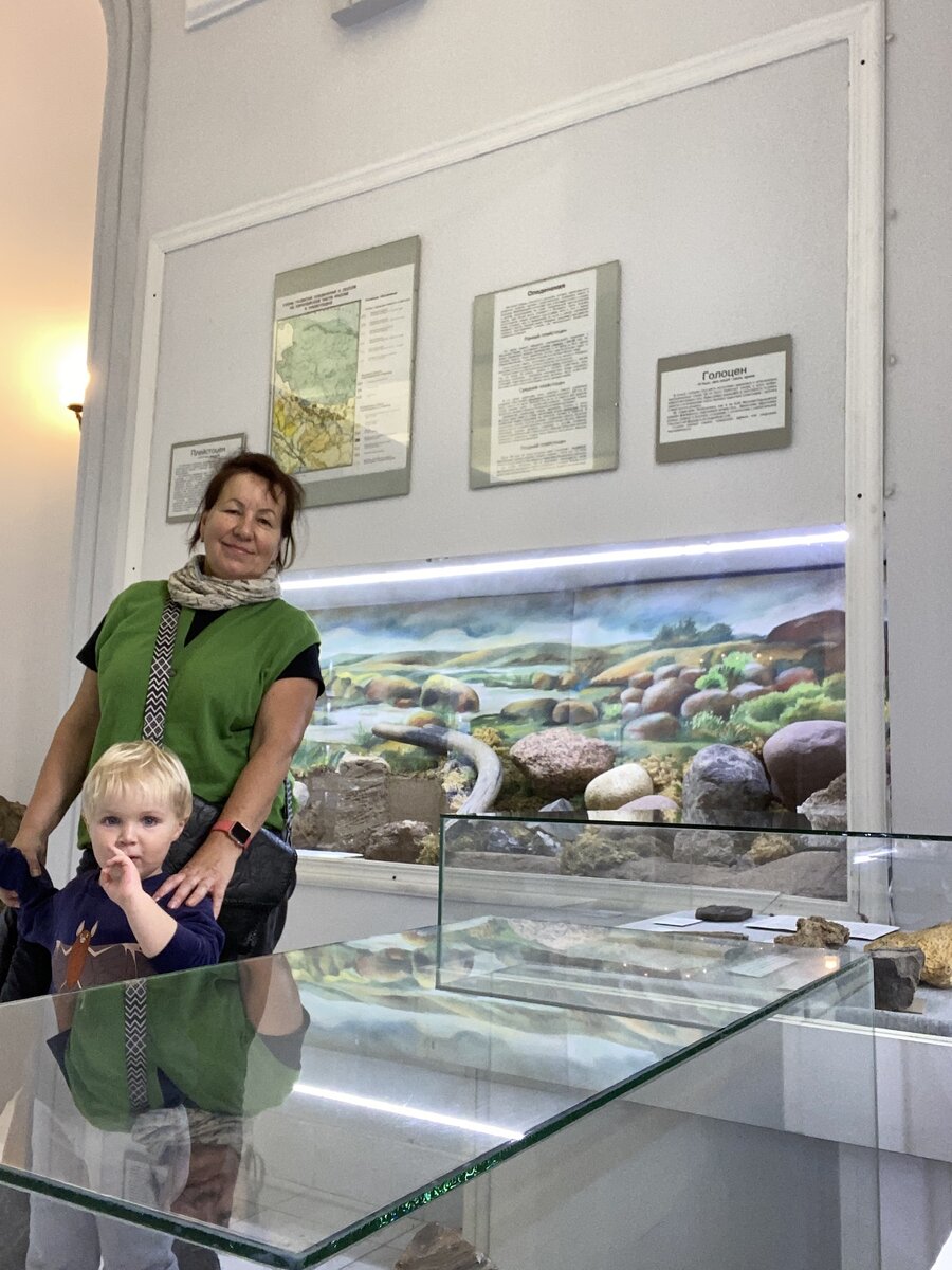 Путешествуем с внуком с его двух лет. Далеко не уезжали еще. Оставаясь у Таты ночевать , малыш Тимофей обязательно пустит слезу, как ему вдруг захотелось к маме. За год мы много посмотрели. На даче в Шатуре летом жили. Два раза . Не без слез, само собой. Фиксирую то, что видели. Пока при памяти. Подмосковный Дендрарий Лосиный остров Босоногая тропа. От Москвы 5 км по Щелковскому шоссе до пересечения с Балашихинским шоссе. Посещение стоит запланировать на лето. Дорожки с разным покрытием для ходьбы босиком. Живые лабиринты . Качели, мостики, скамейки. Парковка, буфет. Билеты возможно приобрести в кассе и на сайте. (400-500 ₽) Геологический музей на Моховой. Отправились ради подводного батискафа, но внутрь попасть не удалось, не пускают. Видели костюм пожарника для работы вблизи вулканов, вигвам из янтаря. Старый советский музей. В числе экспонатов коллекция минералов Сергея Миронова. Нынешний председатель партии ”За справедливость” некогда служил геологом. Немноголюдно.