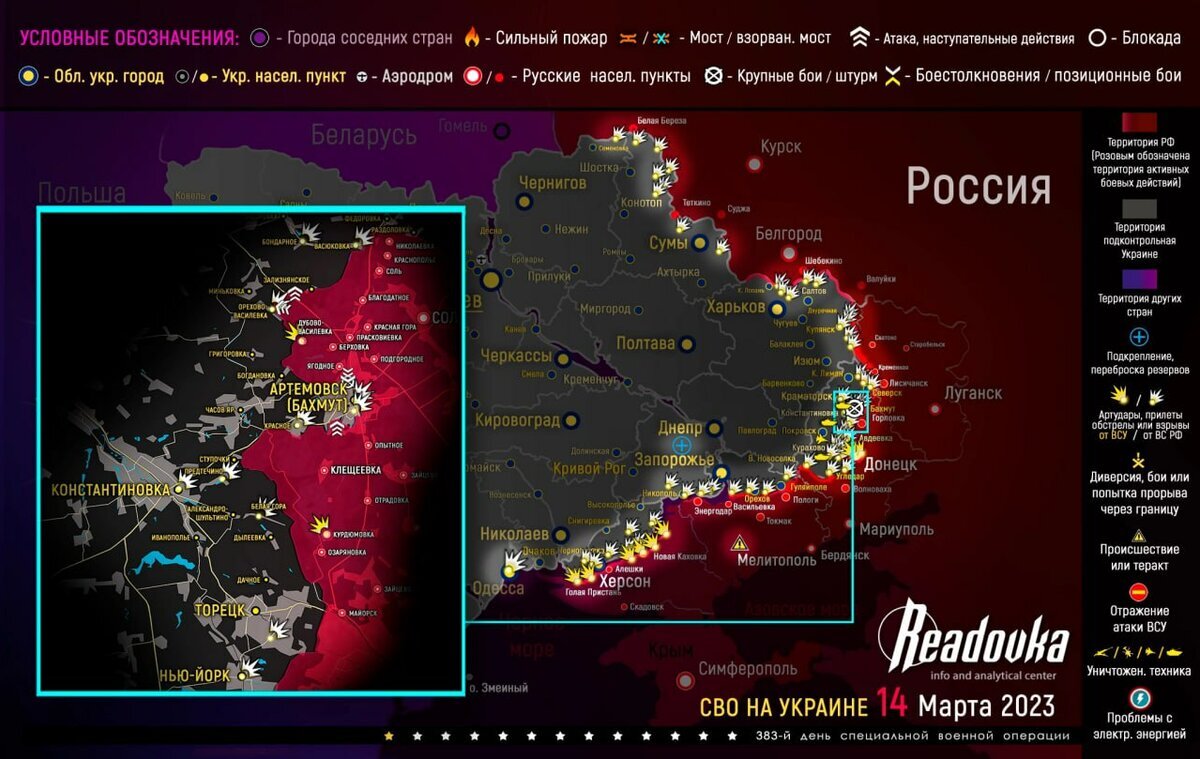 Карта военных действий и ситуация на фронтах вечером 14 марта