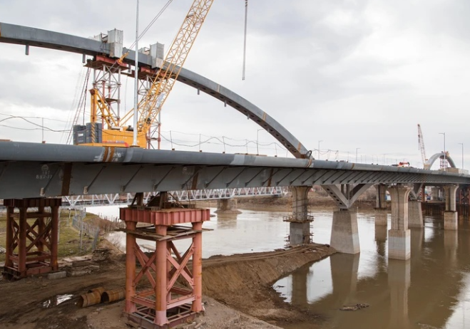 На Яблоновском мосту завершили установку арок В Краснодаре на строящимся Яблоновском мосту завершили установку двух арок высотой 15 метров. Арки изготовили и привезены из Кургана. Все элементы арок смонтированы. Следущий этапом будут установлены подвески -троссы, а затем начнется благоустройство моста. На июнь запланировано открытие левой части моста, к концу 2023 года планируется открыть полностью мост. Фото vk.com/yuvec hipolink.me/yuvec vk.com/yuvec ok.ru/yuvec dzen.ru/yuvec