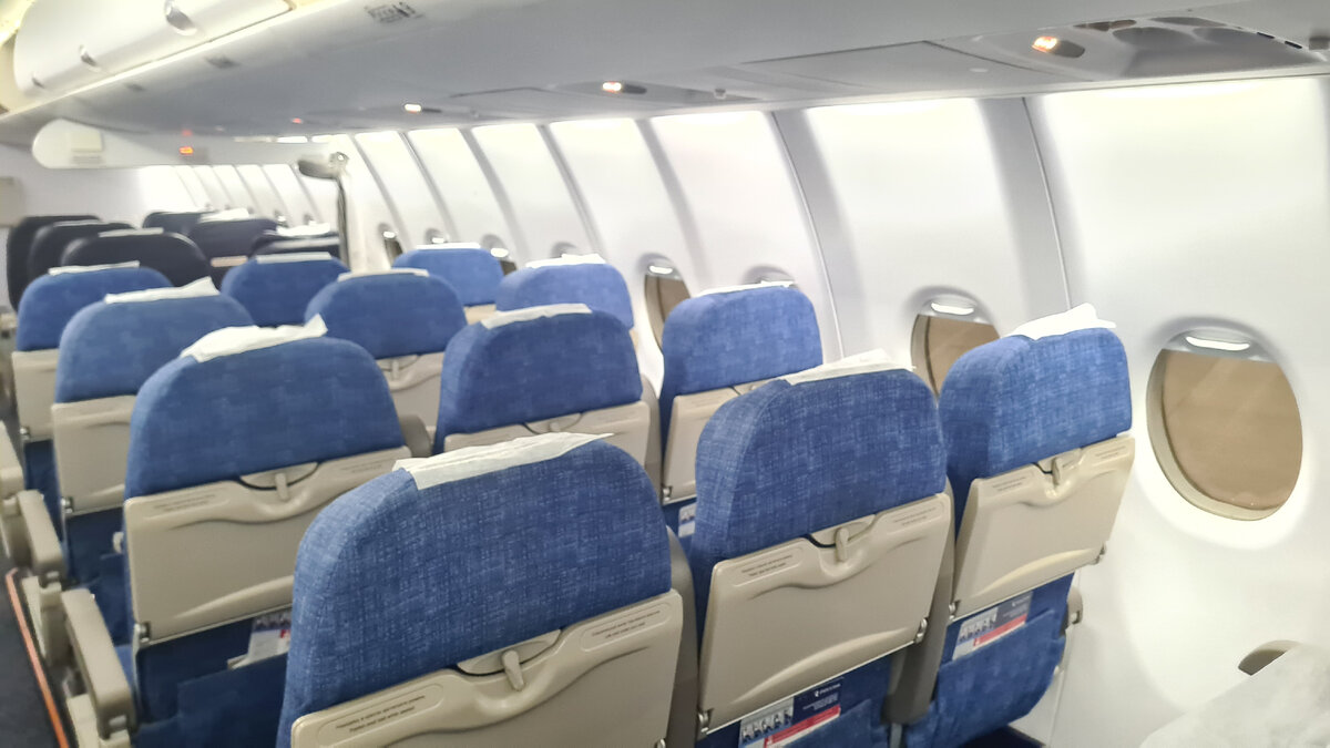 Да-да, он самый. SSJ-100, именно на нём я и прокатился. Самолётик весьма симпатичный и прикольный - ощущение такое, что места в экономклассе на каждого пассажира чуть больше, чем в аирбасах-боингах. Разгоняется шустренько, взлетает крутенько. Чистенький, новенький, не затоптаный, не заляпаный, не поцарапаный. Из особенностей - компоновка кресел: бизнес класс - 2+2, эконом 3+2. Конкретно этот борт летает на движках SaM-146, и надо сказать движки в целом работают тише, чем CFM-56 на боингах и аирбасах, но есть некоторые режимы, на которых движок словно входит в резонанс то ли сам с собой то ли с фюзеляжем, и получается этакий характерный гул. Импортозамещаться совместные русско-французские двигатели в будущем будут на отечественные ПД-8 Преимущество маленького самолёта - быстрота загрузки. Это вам не 777, в который четыреста паксов посадить нужно, тут все быстренько зашли, быстренько сели, распаксовка по прилёту тоже быстрая. Из минусов: ну мелочь она мелочь и есть, любую мелочь по тур