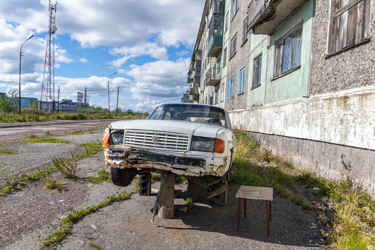 Еще заметил интересную особенность, по поселку очень много убитых машин. В основном волги, стоят либо на пеньках, либо на спущенных колесах. Местная детвора использует их как аттракционы.