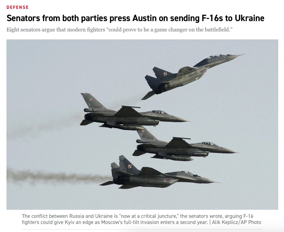 Сенаторы США от обеих партий давят на Пентагон по отправке F-16 в Украину.