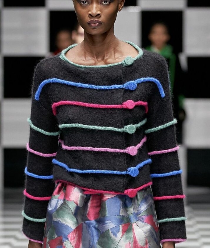 Интересный вариант дикора жакета. Такие объемные полосы можно сделать при помощи шнура I-Cord, для удобства в месте, где планируем цветные полосы вяжем один ряд изнаночгыми петлями ( будет удобнее поднимать петли из полотна), а основное полотно - лицевая гладь. Если не получается вязать шнур I-Cord, можно связать лицевую гладь, закрутить изнаночной стороной на лицевую сторону и пришить. Ниже, вы можете посмотреть в моем МК, как вяжется шнур I-Cord Как вязать накладной карман, вы можете посмотреть в моем МК В конце этого видео, есть МК, как вязать шнур - гусеничка. И двухцветный узор вам тоже понравится. Фото взяты с pinterest.ru Всем удачи и творческих успехов!! Не забудьте подписаться на канал, всегда много интересных идей и мастер классов.