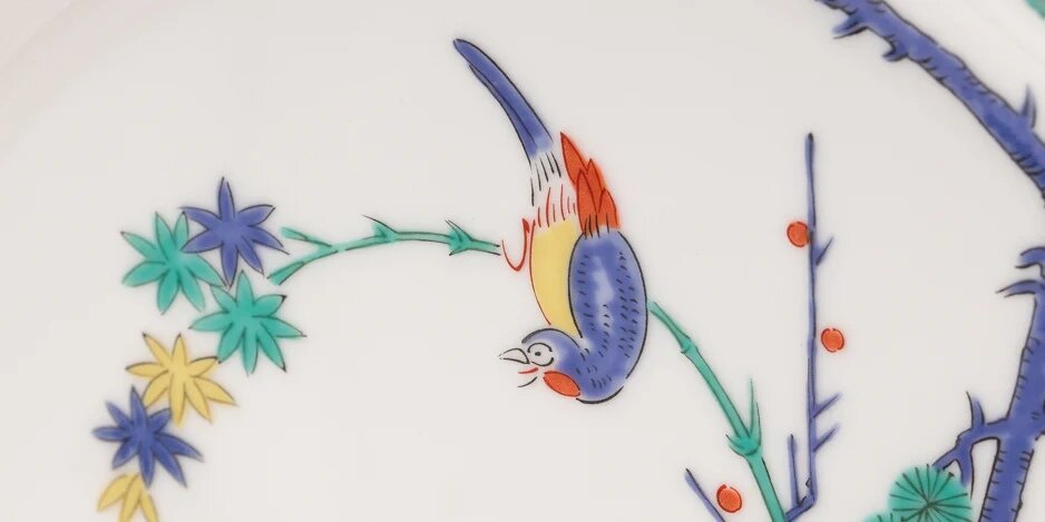 Фарфор Какиэмон известен яркими, смелыми цветами и замысловатыми узорами. На иллюстрациях изображены сцены природы, такие как птицы, цветы и бабочки, воспроизведенные в мельчайших деталях. А сам дизайн часто асимметричен, с акцентом на негативное пространство и простоту.