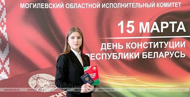 В День Конституции страны во Дворце культуры области состоялось торжественное мероприятие, на которое были приглашены юноши и девушки региона, которым уже исполнилось 14 лет. Ребята получили свой первый и самый важный в жизни документ – паспорт гражданина Республики Беларусь. В числе тех, кто сегодня в торжественной обстановке получил свой первый документ, и юная кричевлянка Софья Кондратенко, учащаяся СШ №5. – В моем понимании, быть настоящим патриотом своей страны – это не только пользоваться всеми предоставляемыми Основным Законом правами, но и нести перед обществом обязанности, иметь активную позицию, участвовать в жизни своей республики, ценить ее традиции, гордиться ее славным прошлым. Я стараюсь хорошо учиться – это мой основной труд на сегодняшний момент, занимаюсь исследовательской работой. Надеюсь, что смогу принести пользу любимой Беларуси, – поделилась Софья. – Мы, молодое поколение, – будущее страны, и именно от нас все зависит. Получив паспорт, ты действительно ощущаешь б