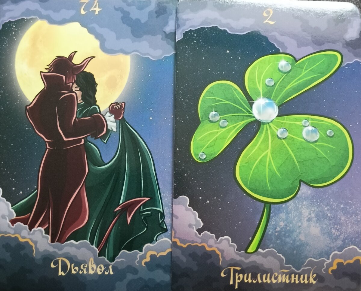 Эта карта практически всегда положительна и чаще всего её предсказания связаны с личными отношениями, ведь в природе Клевер чрезвычайно жизнеспособен, а места, где его особенно много, благотворно влияют на людей, а само растение издревле используется в народной и магической медицине. Принято считать, что в соответствии с символикой четырёхлистный стебель принесёт счастье и удачу человеку, нашедшему его на лугу или поле. Аркан непременно вселяет уверенность в завтрашнем дне и оптимизм, олицетворяет надежду на лучшее будущее и на решение всех возникающих проблем. В случае, когда карта спрашивающего окажется рядом с Клевером, это укажет на то, что возникшие трудности разрешатся в самое ближайшее время, и больше не будут препятствовать вам на пути к успеху. Клевер советует не терять надежды и верить в свою удачу, прогоняет уныние и пессимизм, придаёт мужество и понимание, что счастье уже близко, незамысловатое, тихое и безыскусное, такое же как и сам полевой цветок.