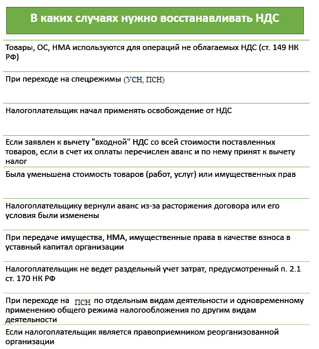 См. также «Откорректировали перечень оснований для восстановления НДС».