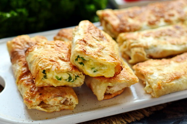 Если хочется чего-нибудь вкусненького к чаю, но времени особо нет, можно воспользоваться этим замечательным рецептом и приготовить жареные «трубочки» из лаваша с начинкой из сыра и зелени. Получается очень вкусно и сытно.