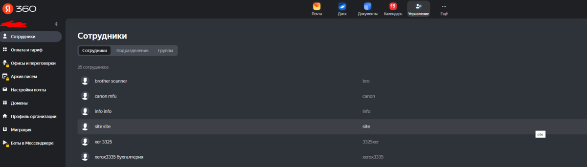 к сожалению штатного способа нет, так-что делаем, как умеем, для этого заходим в админку yandex360 и список сотрудников, выделяем всех сотрудников и копируем, вставляем в excel дальше, в следующим за логином столбце пишем =J1&"@nashdomen.ru" (J1 это номер ячейки с первой частью почты, а nashdomen.ru это собственно адрес домена который будет использоваться для почты, получится как-то так: теперь копируем столбец с почтами, чтобы конвертировать его из формул в просто почтовые адреса теперь в соседнем столбце жмем ПКМ и выбираем вставить "значения" (иконка 123) далее убираем лишние столбцы и наш файлик со списком имя+почтовый адрес готов сохраняем или как файл Excel или как CSV