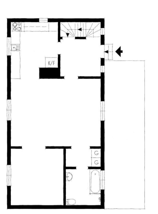 Этот дом в пригороде Стокгольма выполняет роль дачи. Хозяева давно хотели его переделать на новый лад, но в связи с финансовыми трудностями, откладывали эту затею. И вот настал момент, когда руки наконец-то дошли до преображения дачного домика. Получилось в меру современно и уютно, но без какой-либо помпезности. Проект Кухня-гостиная На первом этаже расположились общие зоны: кухня, гостиная, прихожая, гостевая комната и санузел. Весь интерьер выполнен в светлых тонах. Пол в кухонной зоне выложен плиткой. Благодаря большим окнам, в помещении всегда светло, из-за этого хозяева решили сделать черный гарнитур, чтобы он играл на контрасте со всем остальным помещением. От верхнего яруса отказались из-за ненадобности. Ближе к гостиной расположилась столовая зона с большим деревянным столом. Некоторые стены хозяева оставили в родном кирпиче, чтобы добавить нотку брутальности и лофта. В гостиной появился большой светлый диван и ТВ-зона. Гостевая комната Распашные двери ведут в гостевую комнат