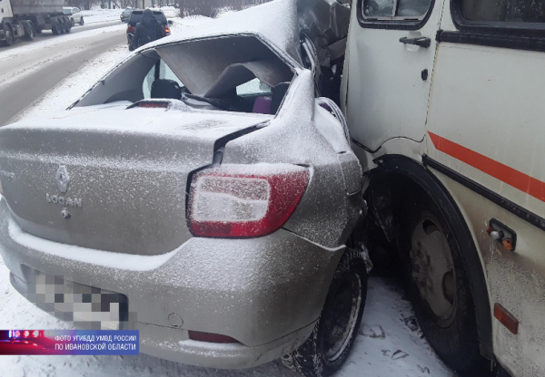 В Иванове в ДТП с ПАЗом пострадал выехавший на встречную полосу 33-летний водитель "Рено Логан"