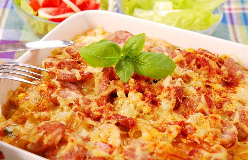 7. После этого посыпьте сверху тёртым сыром и запекайте еще 5-7 минут до того, как сыр расплавится и лёгкий золотистый цвет появится на верхушке.