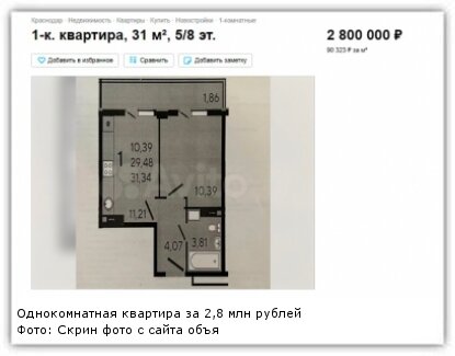 Купить однокомнатную квартиру в Краснодаре — выполнимая задача. На рынке недвижимости представлены тысячи объектов по разным ценам. В городе можно приобрести как недорогие однокомнатные квартиры, так и элитные "однушки", которые стоят как 20 квартир эконом-класса. Какие предложения есть на рынке недвижимости Краснодара, рассказывает ИА KrasnodarMedia. Средняя цена "квадрата" в строящемся или только что сданном доме в Краснодаре составляет 143 391 рубль. Квадратный метр на вторичном рынке обойдется на 32% дешевле — в среднем в 108 661 рубль. Однако среди предложений на первичном рынке желающие могут найти недорогие объекты, которые стоят ниже, чем в среднем по городу и дешевле, чем на вторичном рынке. Например, "однушка" в многоэтажном доме на улице Краеведа Соловьева площадью 31 "квадрат" выставлена на продажу за 2,8 млн рублей. Один квадратный метр жилья обойдется покупателю в 90 323 рубля. Отделка квартиры — чистовая. На улице Тепличной в недавно сданном доме предлагается к продаже