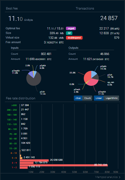 BTC: hlive.blockcypher.com/btc (Точнее данные по комиссиям транзакций в мэмпуле jochen-hoenicke.de/...24h) LTC: hlive.blockcypher.com/ltc DOGE: hlive.blockcypher.com/...oge